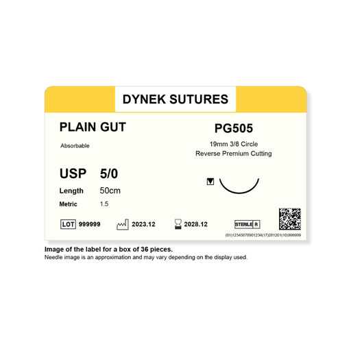 Dynek Surgical Catgut Plain Gut Natural Absorbable 5/0x50cm On 19mm 3/8 Sutures PG505 Box Of 36