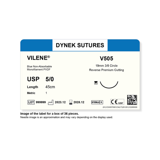 Dynek Vilene Blue Synthetic Non Absorbable 5/0x45cm On 19mm 3/8 Sutures V505 Box Of 36